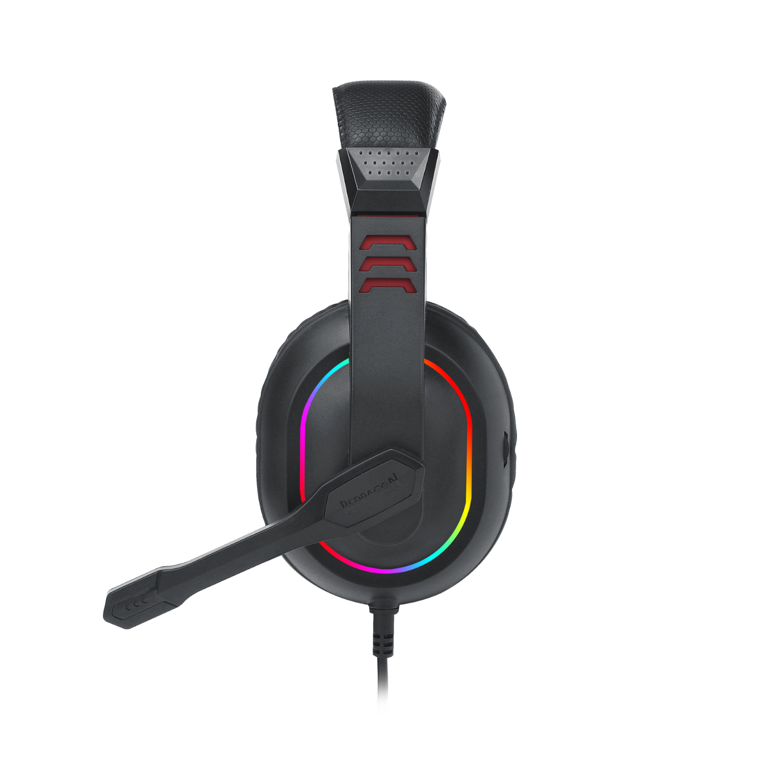 The Redragon ARES RGB stereo gaming headset has a lightweight design, crystal clear sound, RGB Lighting, a highly sensitive microphone, and excellent noise reduction. The ARES offers considerable comfort for prolonged gaming sessions thanks to its soft padded closed-ear cups, adjustable headband, and memory foam cups. This ensures comfort and complete immersion during your gaming sessions. The 40mm neodymium directional drivers with 115dB sensitivity deliver extreme audio precision. Its RGB backlighting effects illuminate your gaming environment allowing you to express yourself.